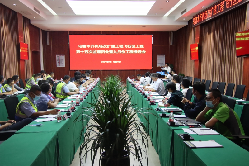 9月3日上午,烏魯木齊國際機場改擴建工程飛行區(qū)第十五次監(jiān)理例會暨九月份工程推進會順利召開。此次會議由烏魯木齊臨空開發(fā)建設投資集團有限公司、烏魯木齊國際機場改擴建工程建設指揮部、烏魯木齊臨空中建機場建設運營有限公司、8家場道施工單位,3家監(jiān)理單位、2家第三方檢測單位以及相關參建單位的負責人、項目經(jīng)理參加。