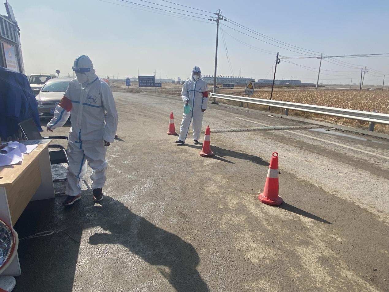 項目部黨支部書記杜騫,第一時間安排人員對北門卡口進行布置,安排采購疫情物資(醫(yī)用口罩、防護服、測溫槍、消毒液等),與10月1日10點左右在新機場北門疫情防控卡點布設完畢,配備了12名項目部管理人員(8小時三班倒)在卡口進行疫情防控。新機場北門疫情防控卡點人員對過往車輛、人員進行登記,掃碼、查看行程卡、核酸報告、登記來源地、去往地點。對無48小時核酸報告的人員進行勸返。