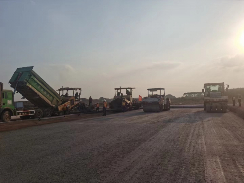 11月28日,隨著第一車水泥穩(wěn)定砂礫混合料倒入攤鋪機(jī),攤鋪機(jī)緩緩啟動(dòng),標(biāo)志著由我司承建的南寧吳圩機(jī)場改擴(kuò)建工程飛行區(qū)場道工程(四標(biāo)段)水穩(wěn)基層試驗(yàn)段施工正式開始。